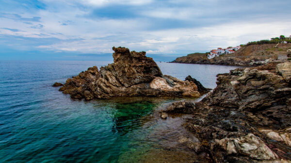 Wallpaper Desktop, Under, Blue, Clouds, Sky, Rocks, Landscape, House, View, Mobile, Coast, Nature