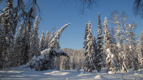 Wallpaper Landscape, With, And, Desktop, Sky, Winter, Snow, Covered, Background, Forest, Trees, Blue