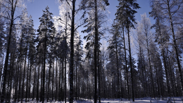 Wallpaper Forest, Sky, Under, Between, Snow, Frozen, Trees, Path, Winter, Blue, With, Covered